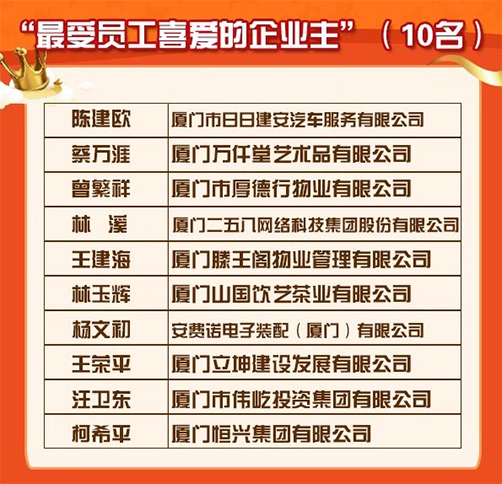 恒興集團(tuán)曾榮膺智聯(lián)招聘“2016年度廈門雇主十強(qiáng)”以及獵聘“2017福建創(chuàng)新非凡雇主獎(jiǎng)”。此次柯希平董事長(zhǎng)榮獲“員工喜愛(ài)的企業(yè)主”也是眾望所及,實(shí)至名歸。