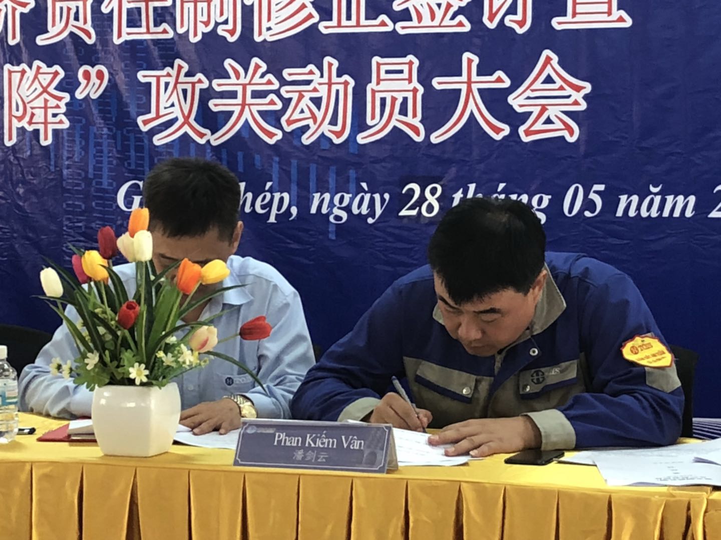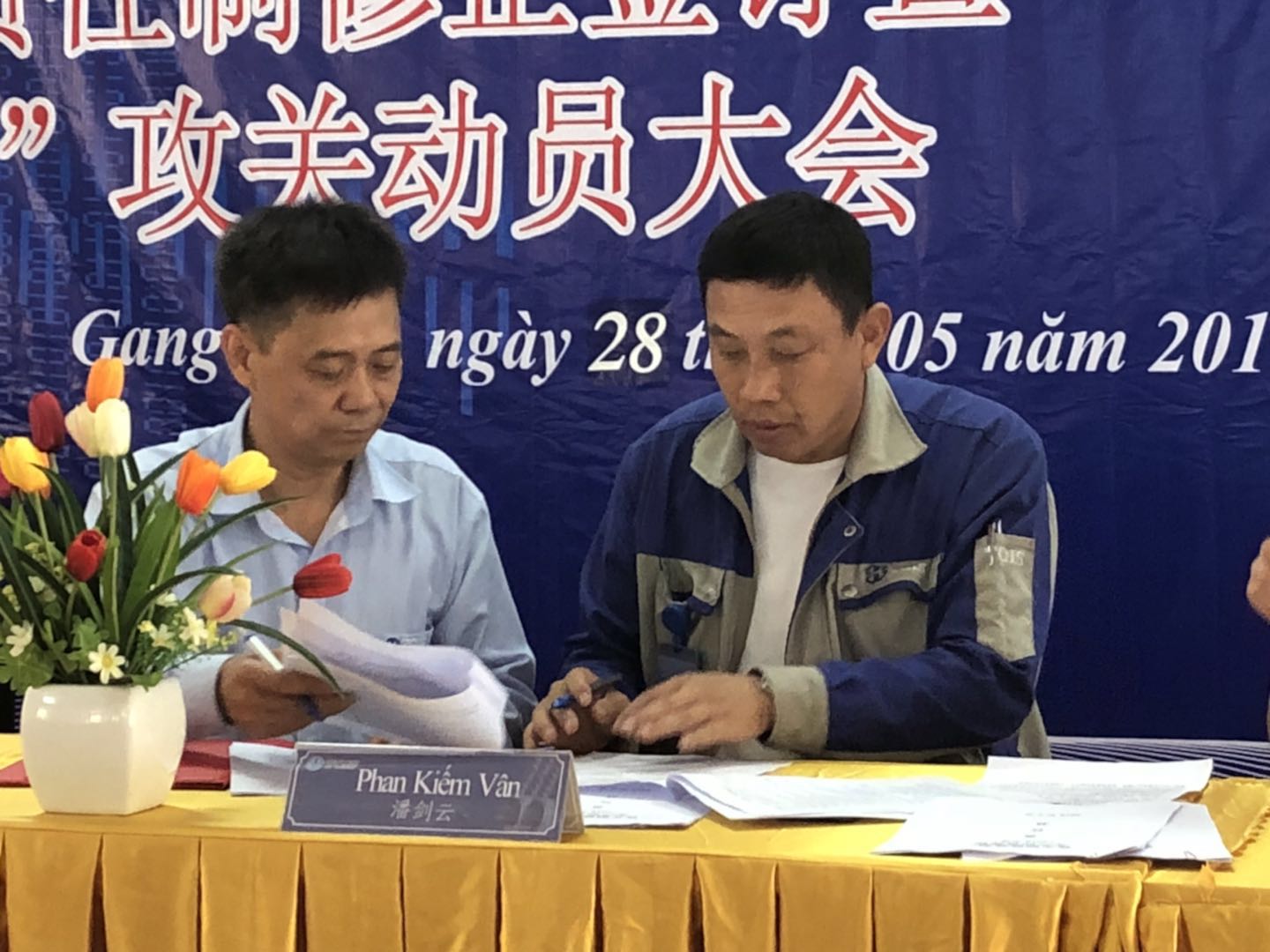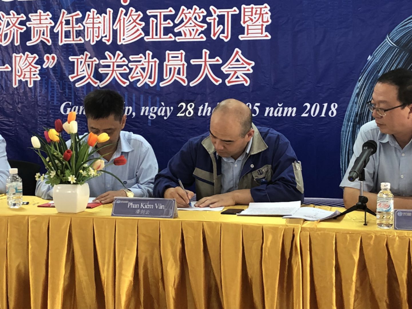 2018年5月28日上午9點(越南時間),越南宣鋼公司召開了目標(biāo)責(zé)任書簽訂暨兩升一降公關(guān)動員大會。本次會議是根據(jù)柯希平董事長提出的“兩升一降”指導(dǎo)方針?biāo)匍_,希望通過簽訂目標(biāo)責(zé)任書調(diào)動員工積極性、團結(jié)全體員工,達到“提升企業(yè)效益、提升員工收入、降低公司成本”的目的。