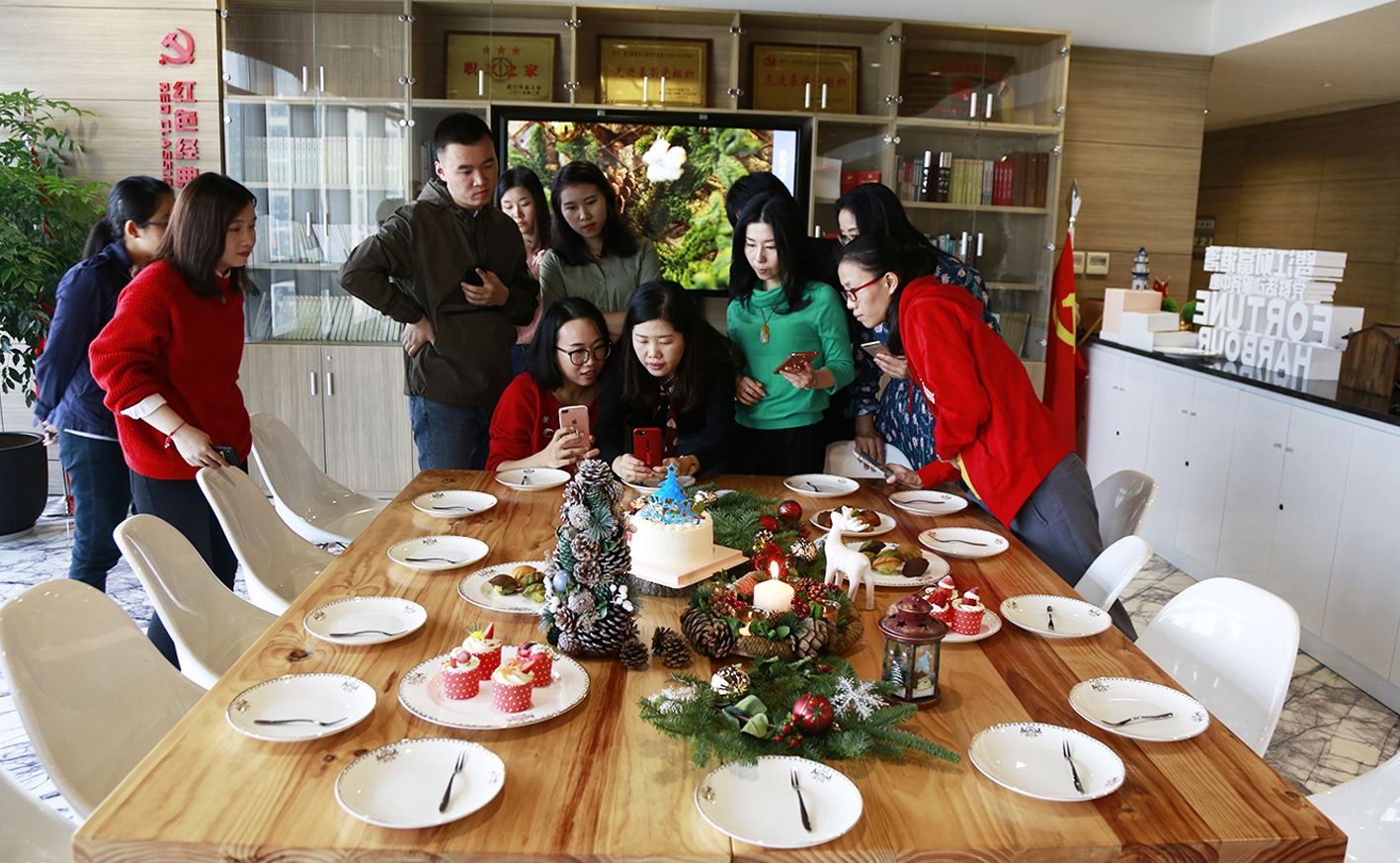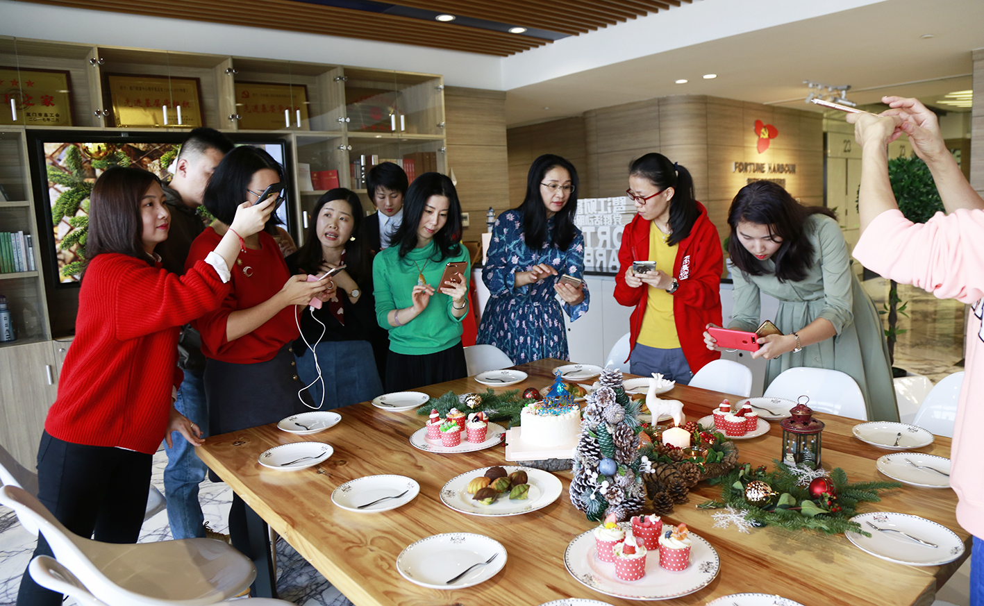 12月21日下午,恒興集團(tuán)第27期“悅界分享會(huì)”在財(cái)富中心23樓如期舉辦。本次分享會(huì)請(qǐng)來(lái)了自然光家庭/美食攝影師 貓貓 與大家分享甜品和食物的拍攝技巧。恒興同事們身著或紅或綠的衣服參與其中,現(xiàn)場(chǎng)溫馨熱鬧,頗能感受到圣誕節(jié)到來(lái)的氣息。