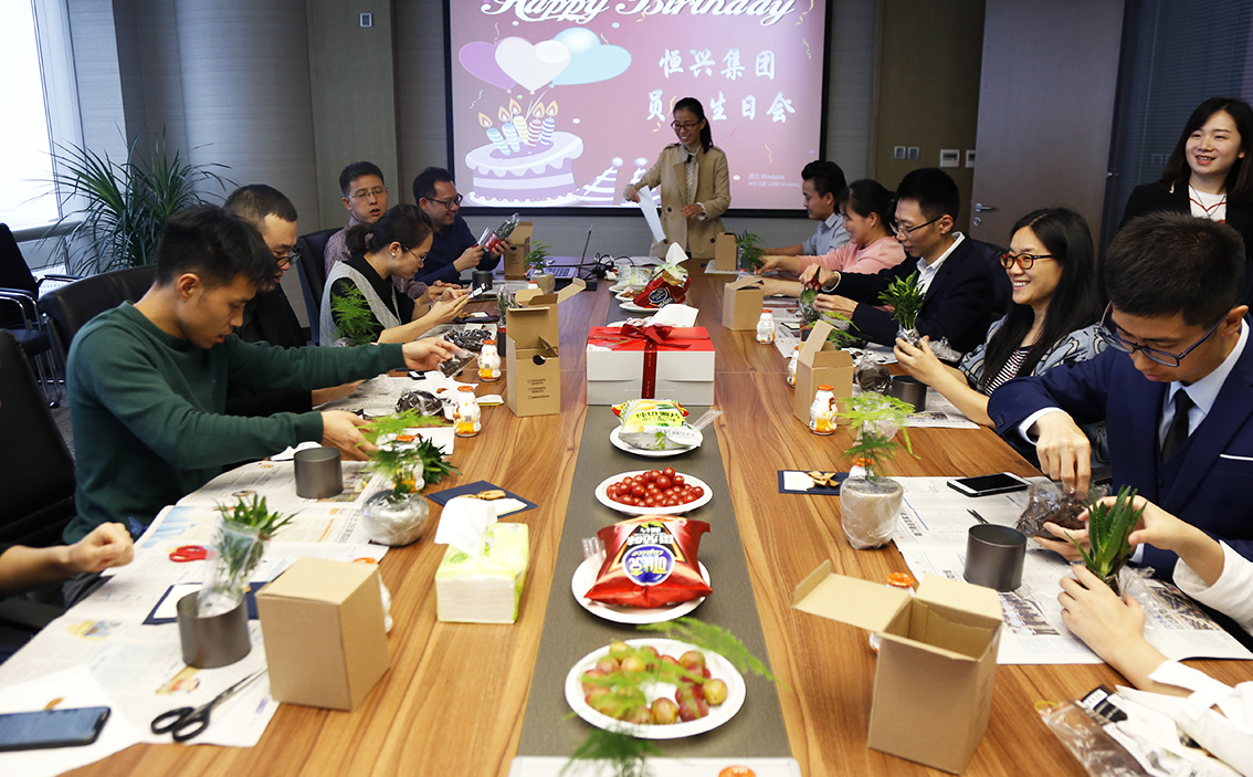 3月29日下午4點(diǎn)45分,隨著現(xiàn)場歡樂的音樂,20余名受邀前來參加生日party的壽星歡聚在41層大會議室。隨著主持人的開場介紹,開啟了第一季度員工生日會?;顒蝇F(xiàn)場,辦公室主任吳勇慧為壽星們送上生日賀卡,并感謝所有壽星對公司所作出的貢獻(xiàn)。接下來進(jìn)入DIY綠植環(huán)節(jié),各位壽星合力搭檔把一株株小綠植種進(jìn)了小黑罐里頭,并給小綠植撒上陶粒作為裝飾,播種希望的同時也收獲了歡樂。緊接著進(jìn)入了生日會的重要環(huán)節(jié):吹蠟燭、嘗蛋糕、許心愿,所有壽星齊唱生日快樂歌后,由壽星代表許麗靜為大家切分蛋糕,在品嘗蛋糕和寫心愿卡環(huán)節(jié)時,每位壽星臉上都洋溢著歡樂和甜蜜的笑容。最后,聚焦的鏡頭留下了本次生日會壽星們的身影,集體合照為本次生日會畫上了一個完美的句號。鏡頭上員工們的歡樂笑臉,正是公司構(gòu)筑一個充滿關(guān)愛的恒興大家園的溫馨畫面!