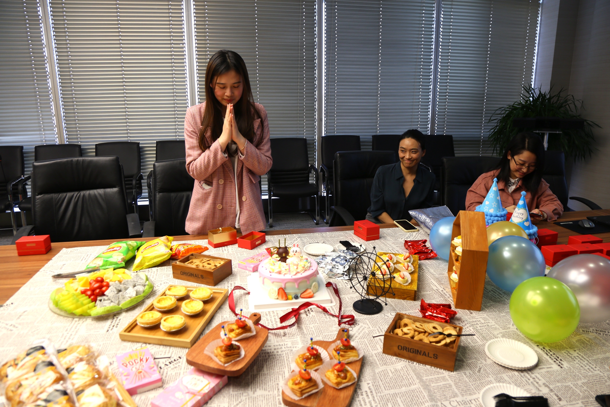 3月26日下午,恒興集團(tuán)2021年第一季度員工生日會(huì)在41樓大會(huì)議室舉行。在集團(tuán)人力部提前布置下,現(xiàn)場(chǎng)擺滿了蛋糕茶歇、氣球擺件、生日裝置等,氛圍淡雅清新。