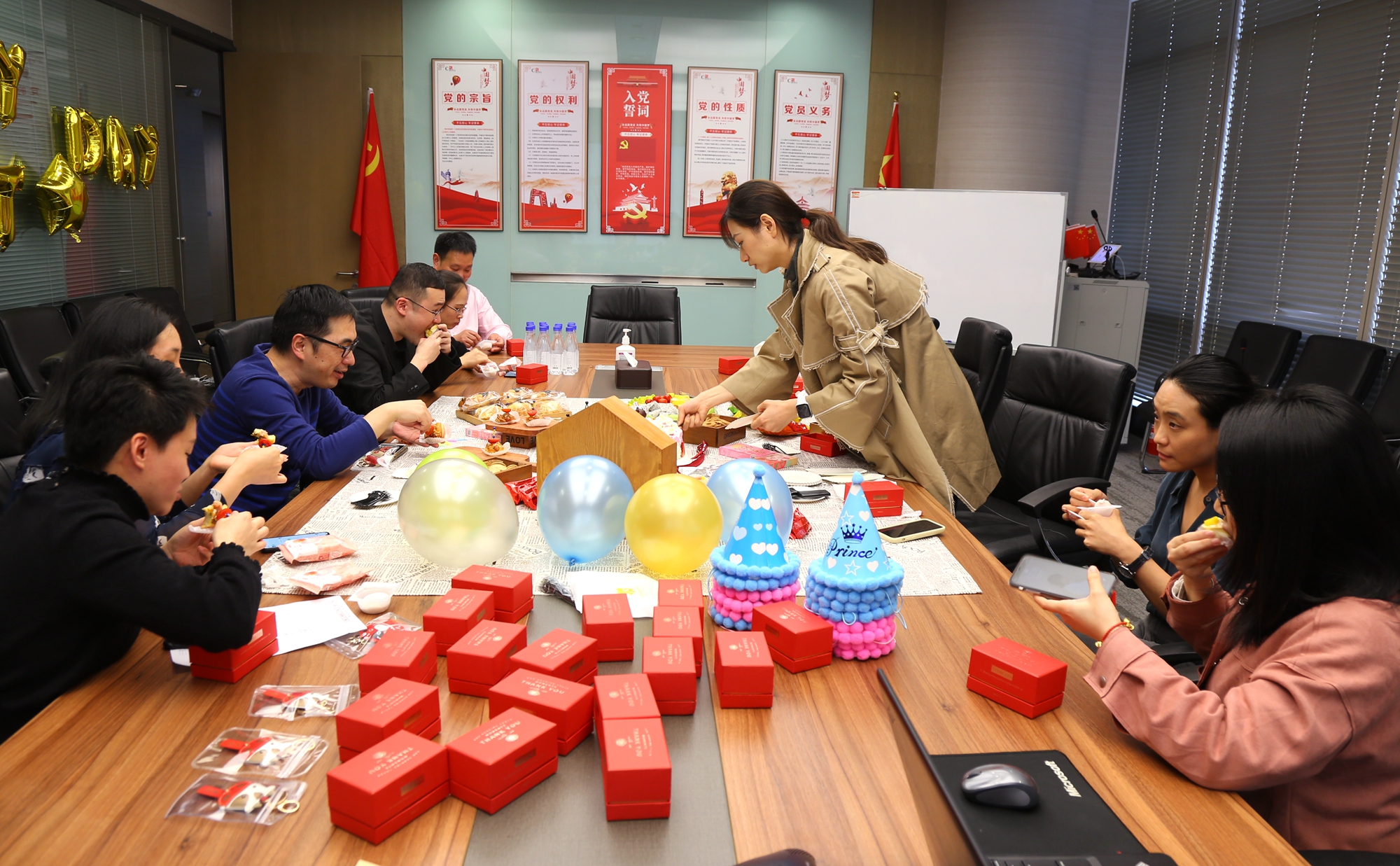 下午4:45,一季度的生日壽星們十余人陸續(xù)到場(chǎng),還有部分同事因工作在身不得不缺席小聚。同為壽星的人力部員工劉琳,貼心為現(xiàn)場(chǎng)壽星們備好了生日帽,并播放生日快樂的背景歌曲。王偉文副總裁、趙揚(yáng)帆、賴志強(qiáng)、司馬菊雪、李麗欽等壽星現(xiàn)場(chǎng)合影留念,為一同生日小聚的緣分,留下一抹精彩瞬間。