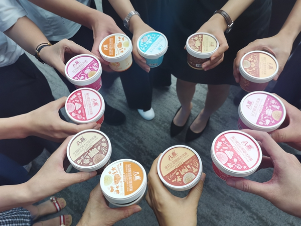 接著,伴隨著熟悉的生日歌旋律,“祝你生日快樂……”,壽星們面對燭光搖曳的蛋糕,共同許下生日愿望。雅雯代表壽星分切芒果千層蛋糕,大家舉起冰淇淋“干杯”擺造型,享用著甜美的蛋糕,每人還獲得一個(gè)生日禮物——小按摩器。