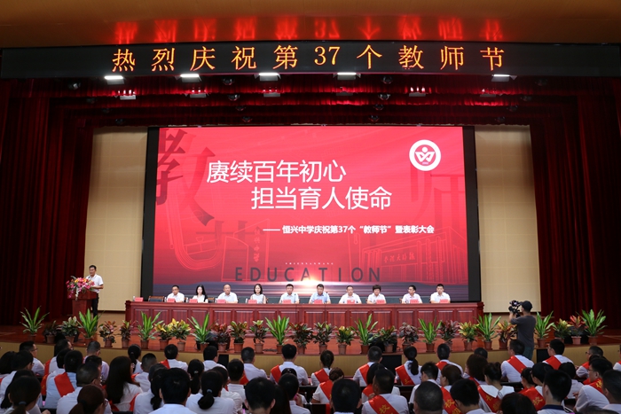 園丁辛苦一堂秀,桃李成材四海春。2021年9月10日下午,在這收獲成果又播種希望的美好季節(jié),安溪恒興中學(xué)慶祝第37個(gè)“教師節(jié)”暨表彰大會(huì)在鐵錚大禮堂隆重舉行。廈門(mén)恒興集團(tuán)柯希平董事長(zhǎng)等一行出席了慶?;顒?dòng)。大會(huì)由學(xué)校黨支部書(shū)記林文土主持。