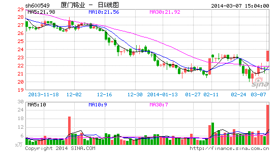 廈門鎢業(yè)(26.04,?-0.52,?-1.96%)(600549)20日晚公布非公開發(fā)行股票預(yù)案,擬募資30億元補(bǔ)充流動(dòng)資金,除公司控股股東、上市公司南京高科(10.70,?0.17,?1.61%)、投資機(jī)構(gòu)認(rèn)購?fù)猓瑥B門鎢業(yè)增發(fā)獲得廈門兩大富豪捧場,其中包括資本市場的“強(qiáng)大散戶”柯希平。公司股票于2014年3月21日復(fù)牌。